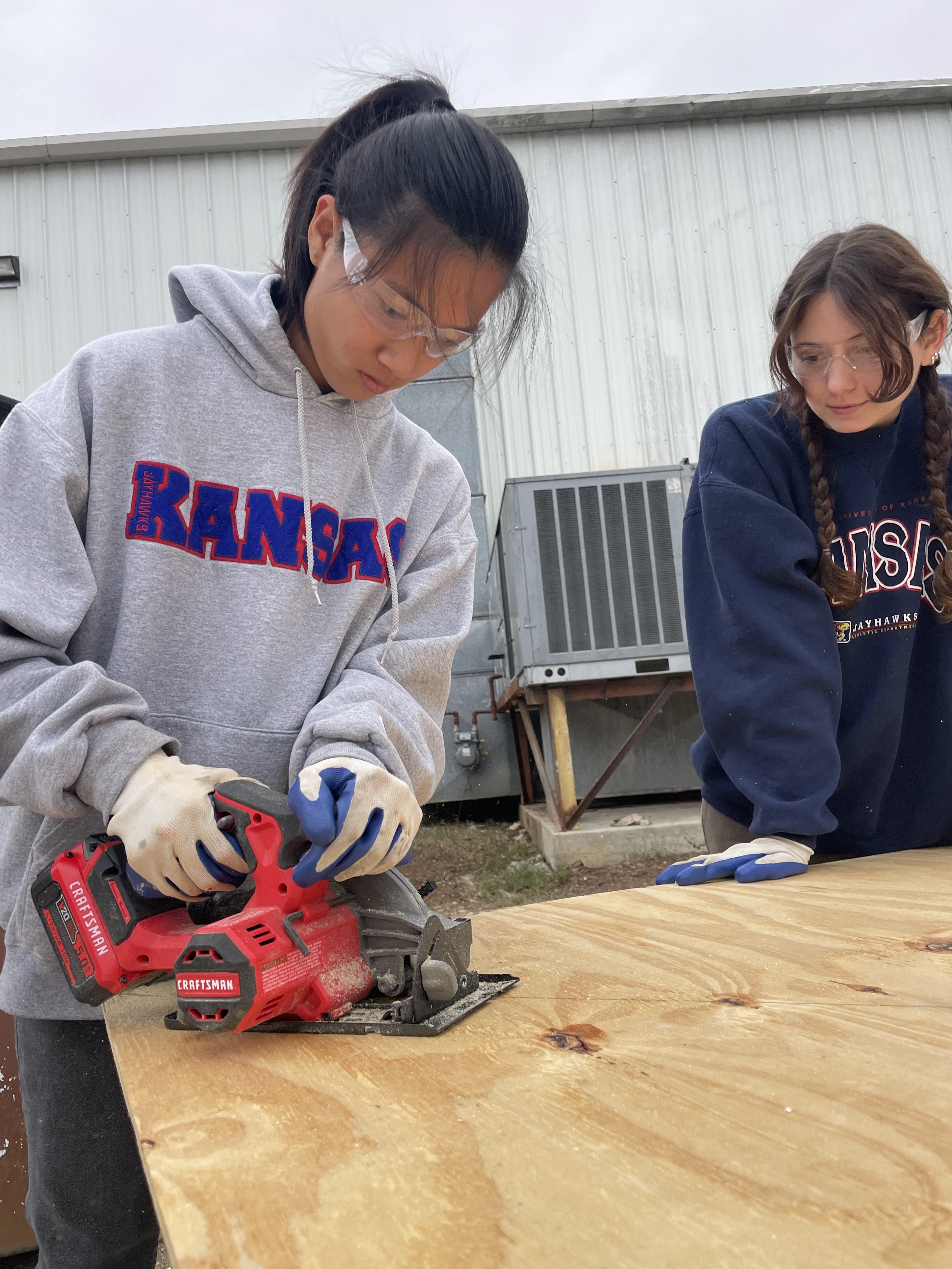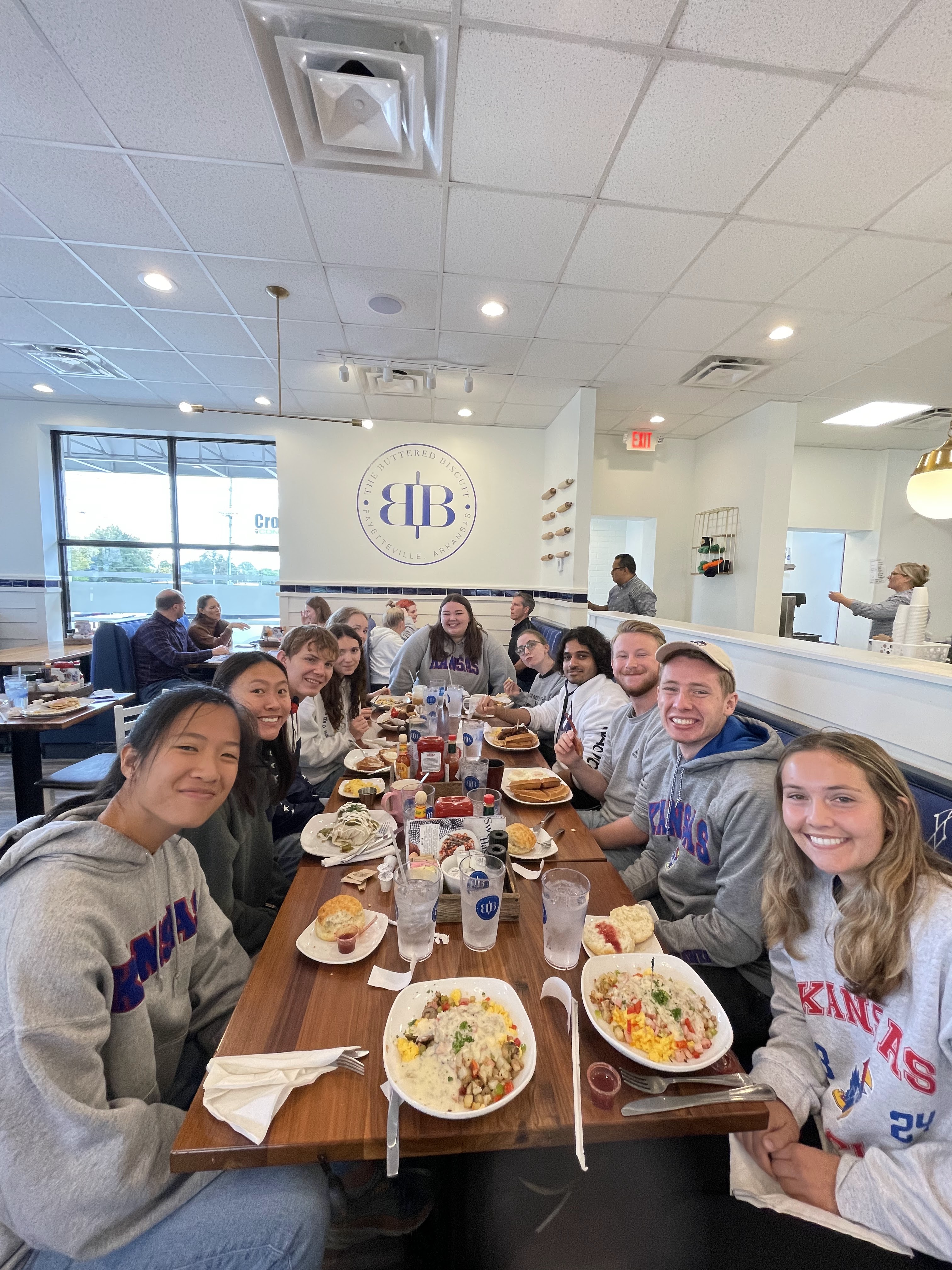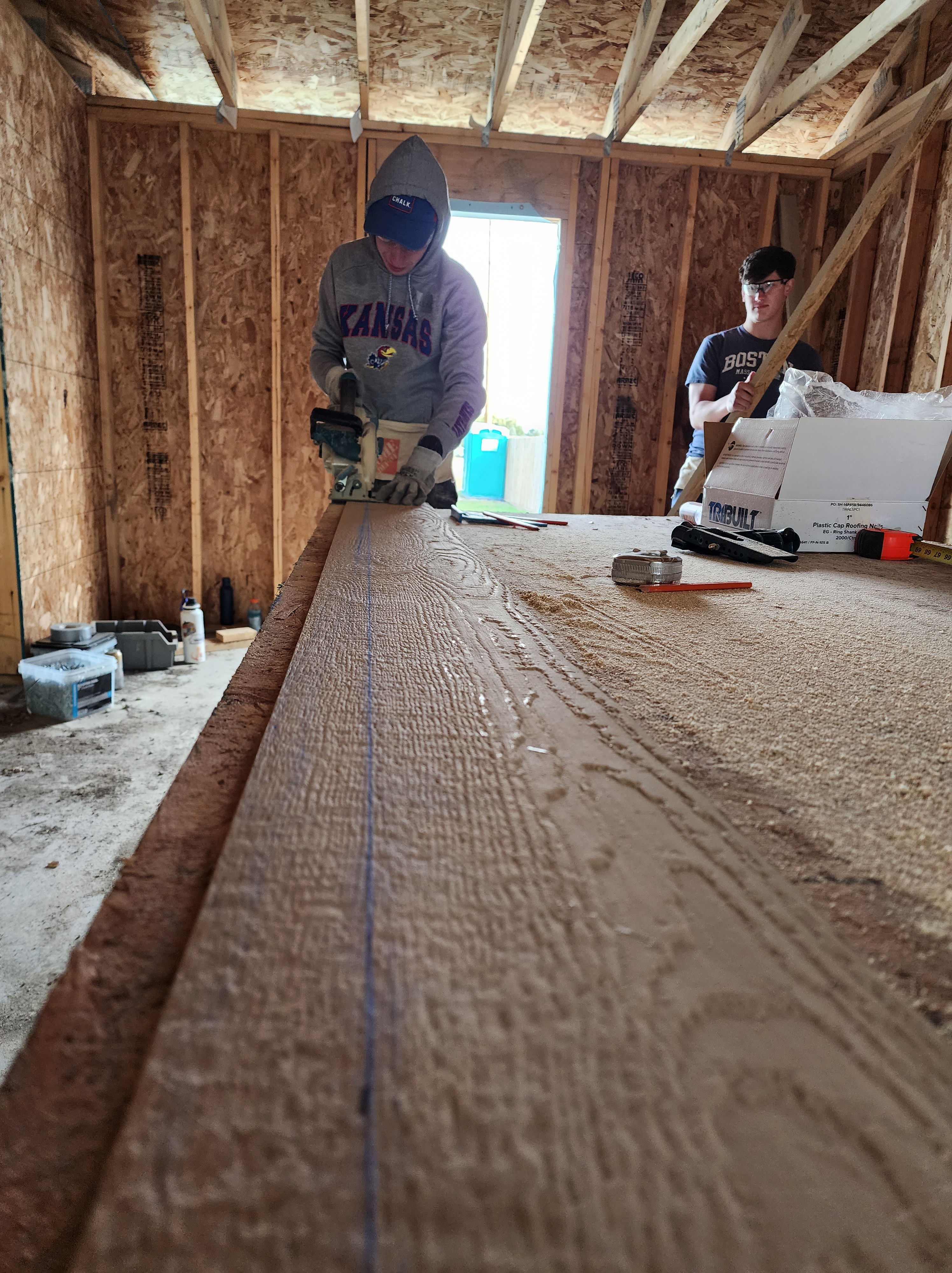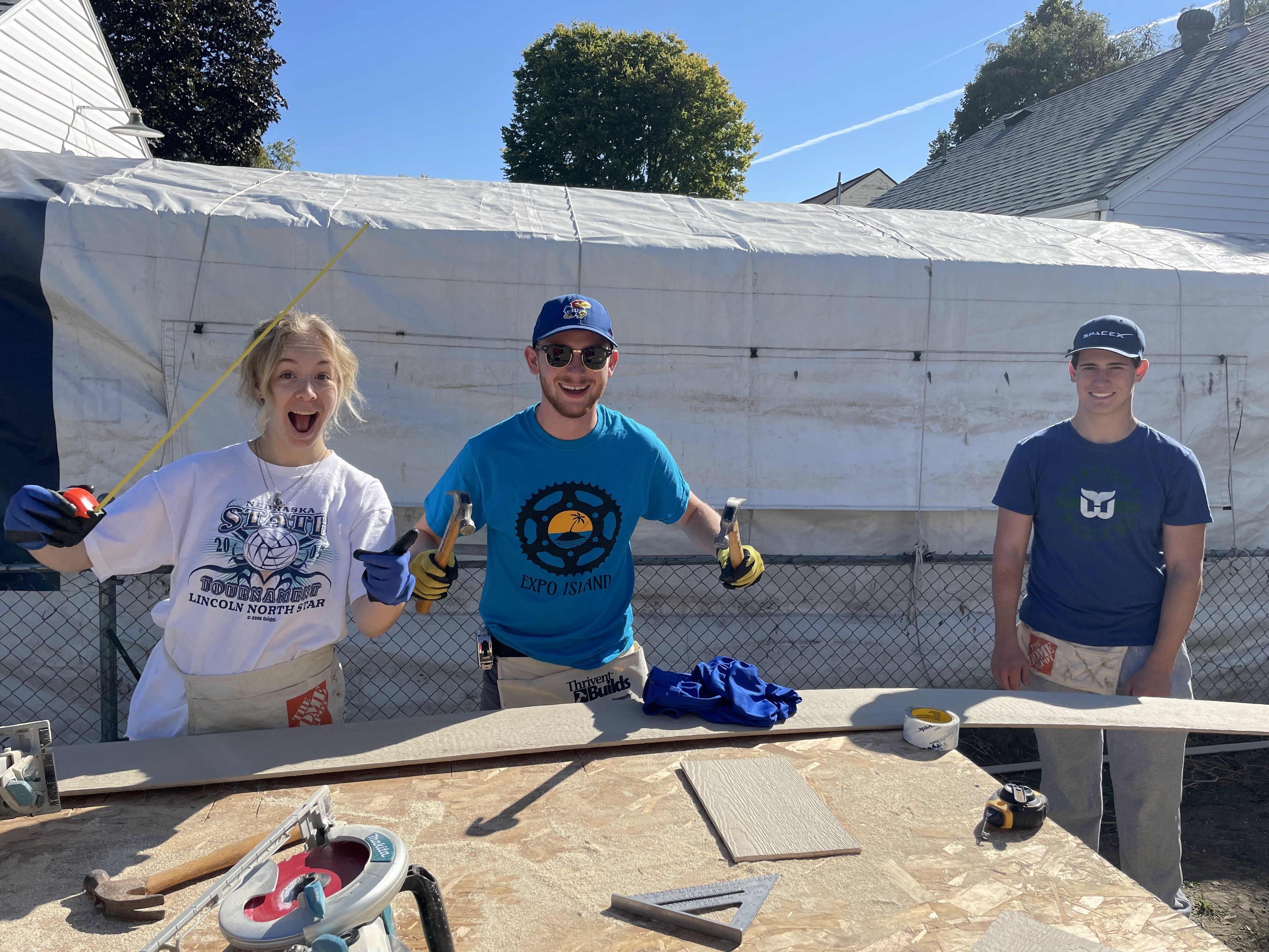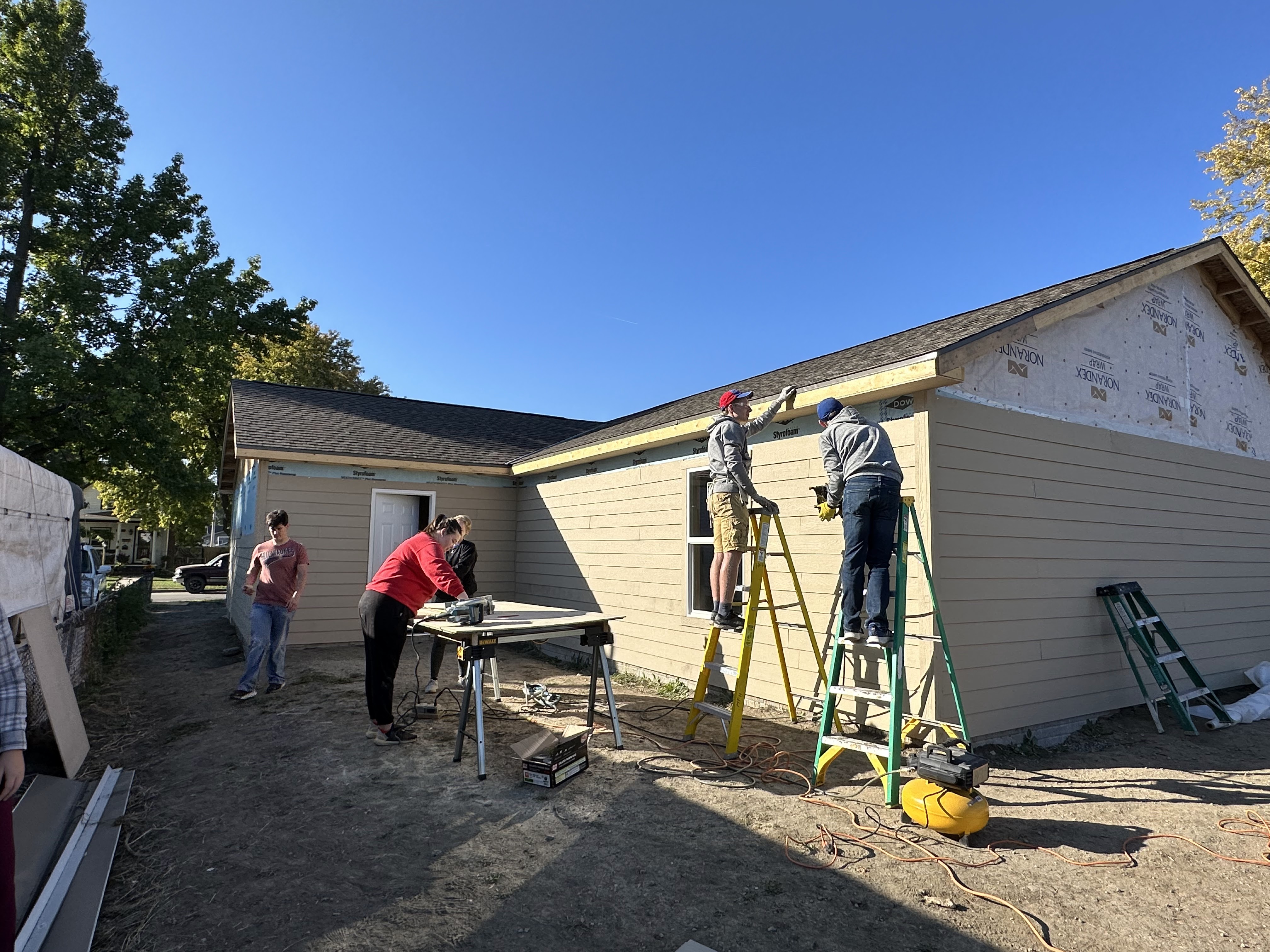 2022’s Fall Break Project took place with Habitat for Humanity in Council Bluffs. Ten EWB-KU members worked on siding a house that was set for completion by Christmas. We spent the mornings and early afternoons measuring and cutting pieces of siding and making a racket in the neighborhood with hammering in nails. Our evenings were spent exploring The Old Market in nearby Omaha, Nebraska, attending a Hippo Campus concert, and hanging out at Vala’s Pumpkin Patch.