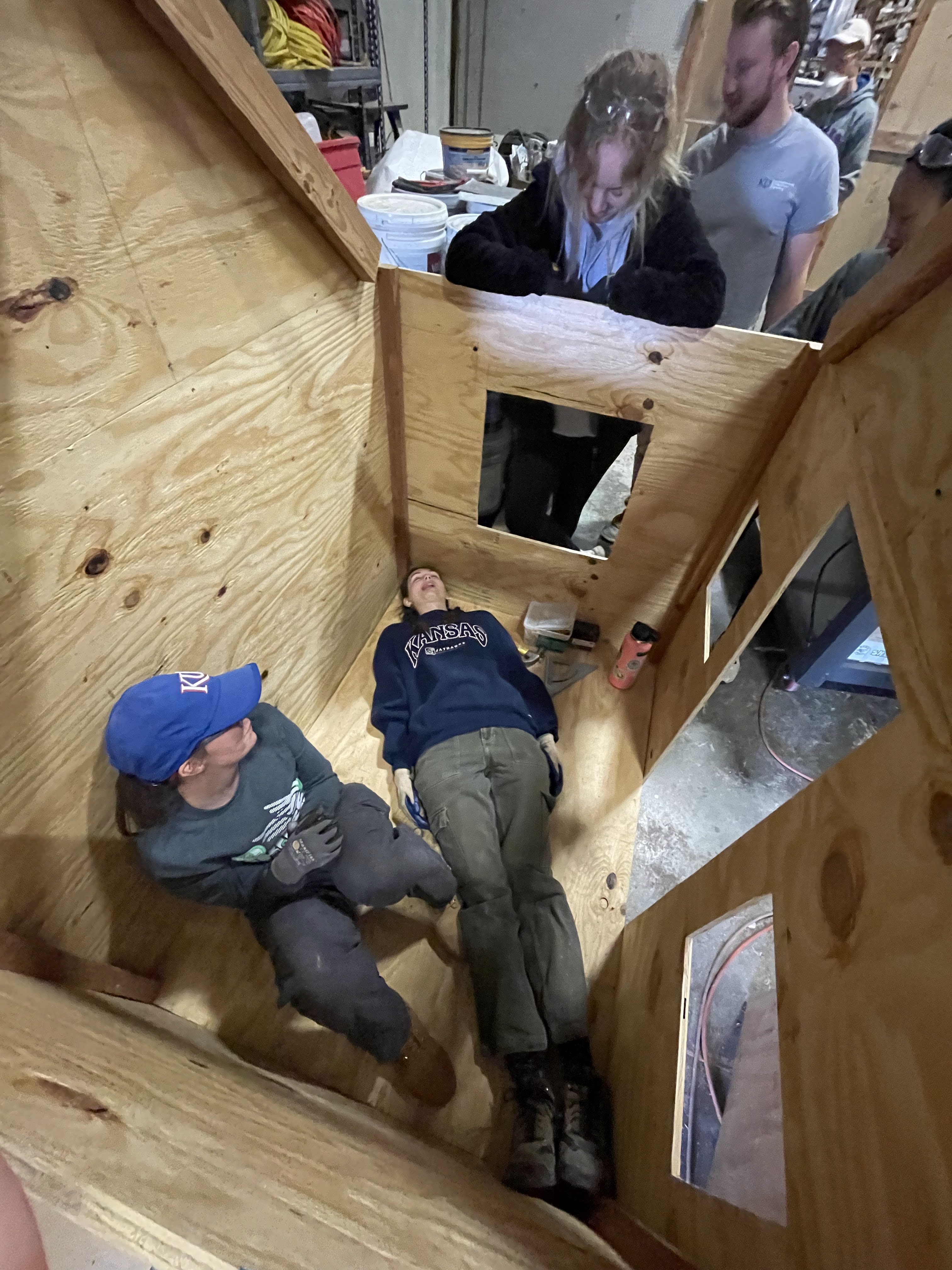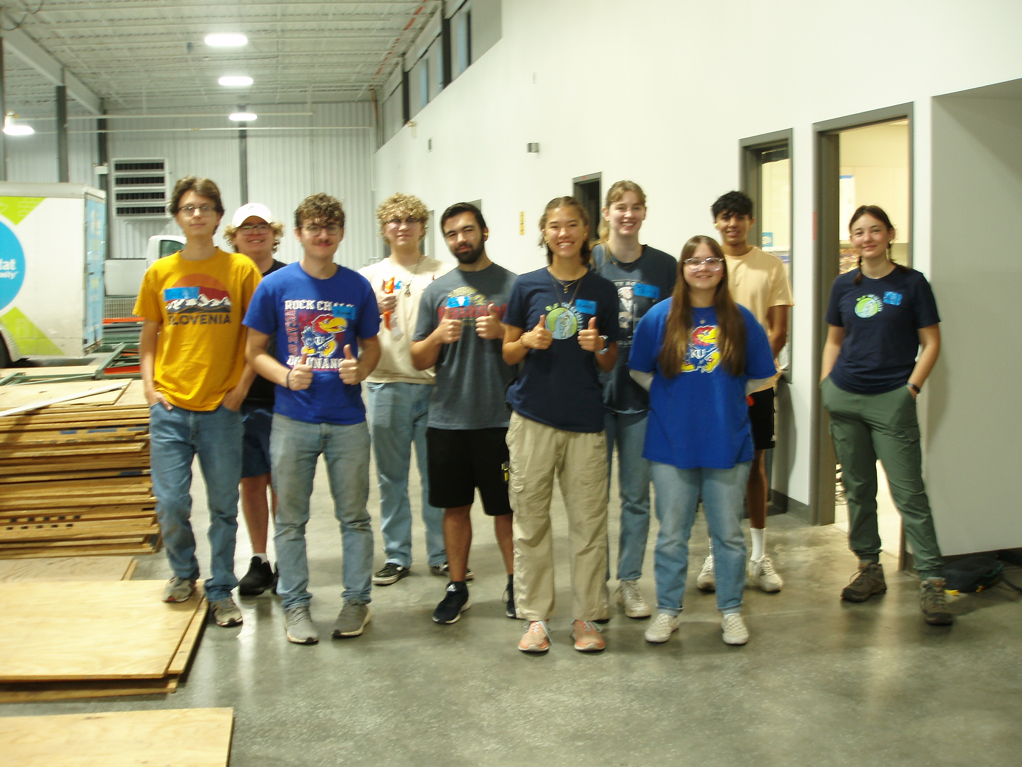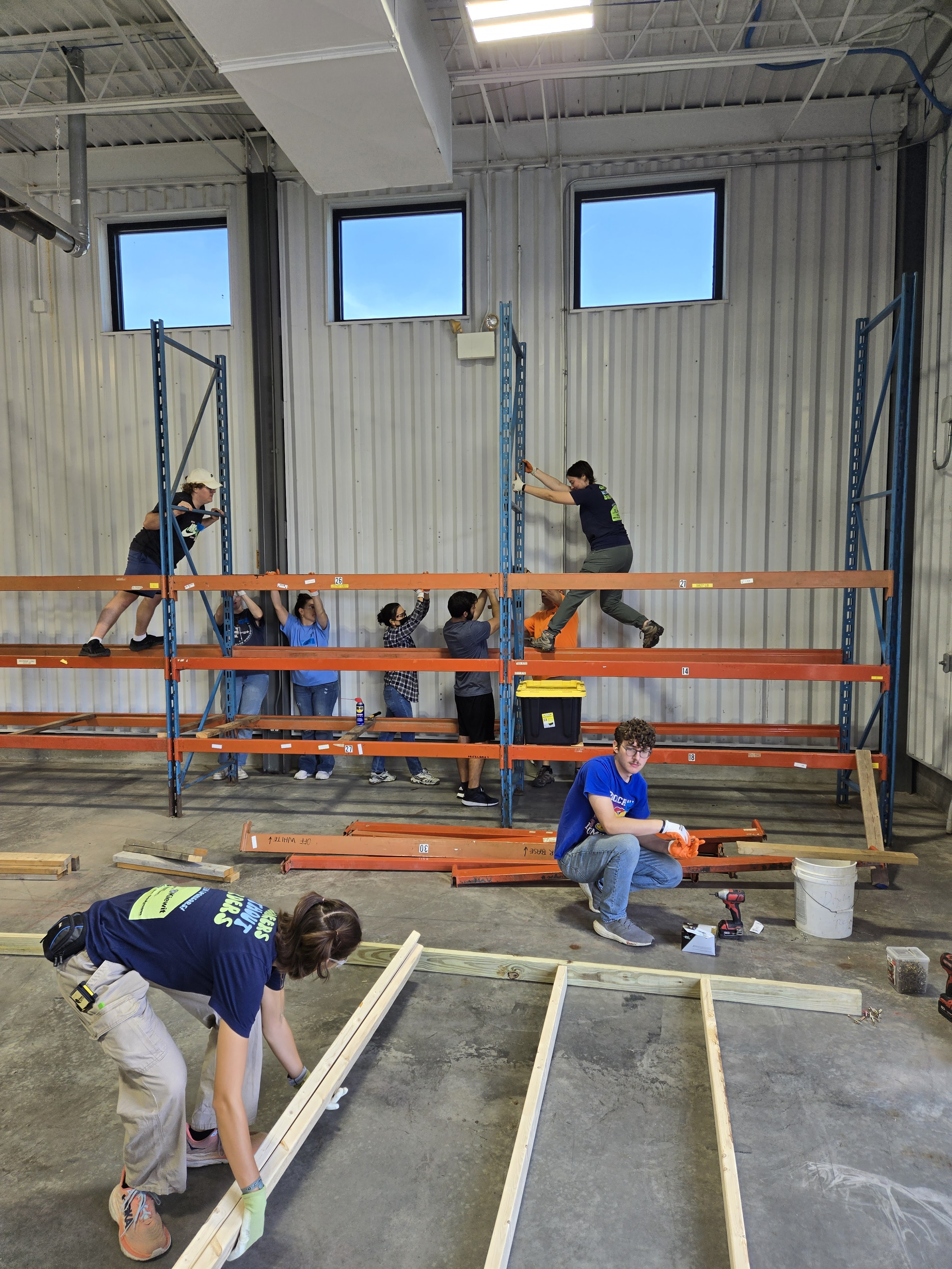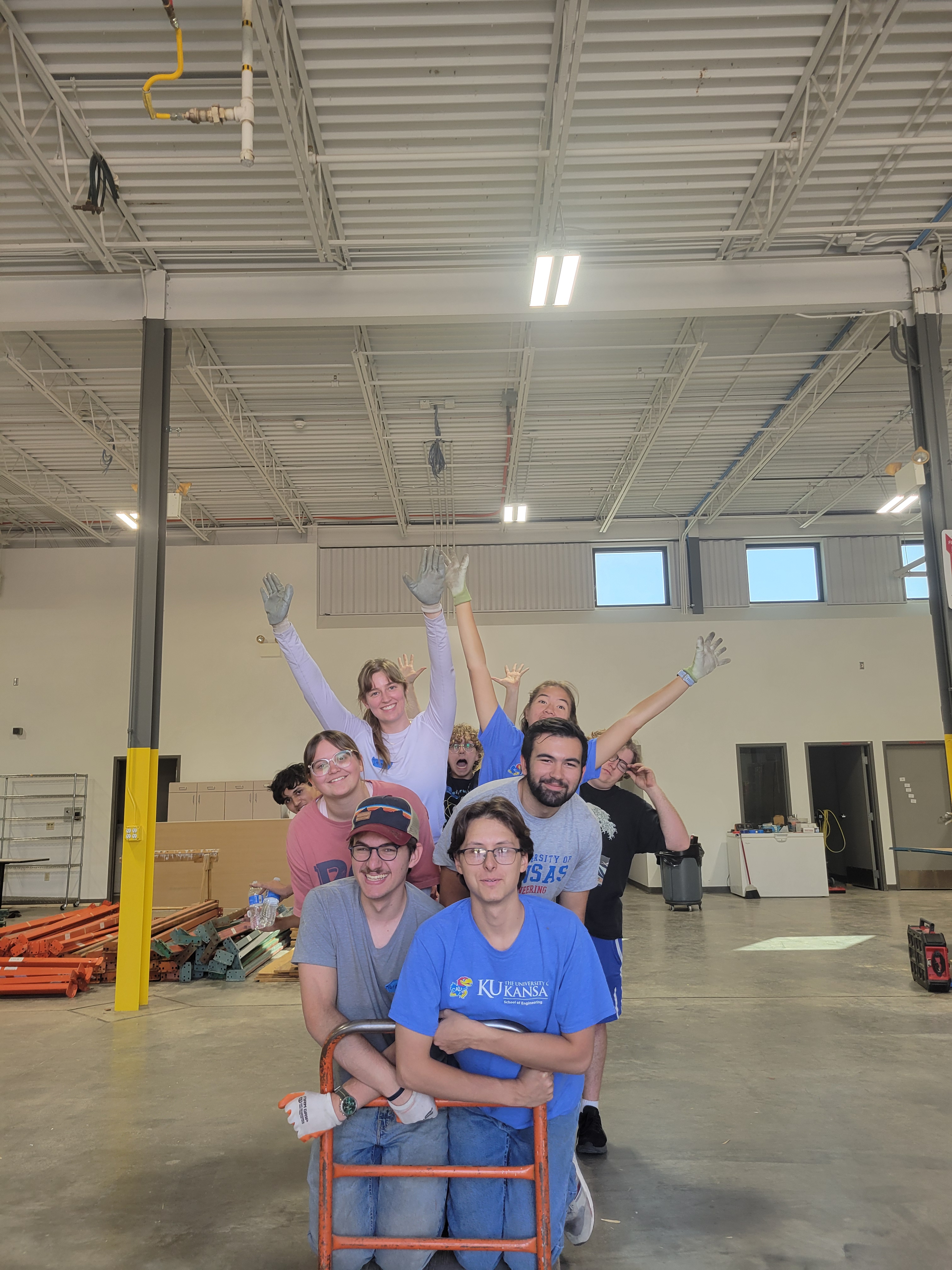 For the 2024 Fall Break Project, KU EWB worked with Habitat for Humanity in Wichita, Kansas. Our members worked on getting their new warehouse filled with storage shelves, new doors, and furniture for two days. Our team also built a wall for the warehouse. The team spent one day moving donated furniture from an aerospace warehouse that was moving to the new Habitat for Humanity warehouse. When not working, we spent lots of time playing cards, going to an arcade with minigolf, go-karts, rock-climbing, and laser tag, solving an escape room, making smores, and going to the zoo! We stayed in an Airbnb and made some yummy food like tacos and grilled sandwiches. We loved our time with Wichita Habitat for Humanity and learned lots of valuable construction skills.