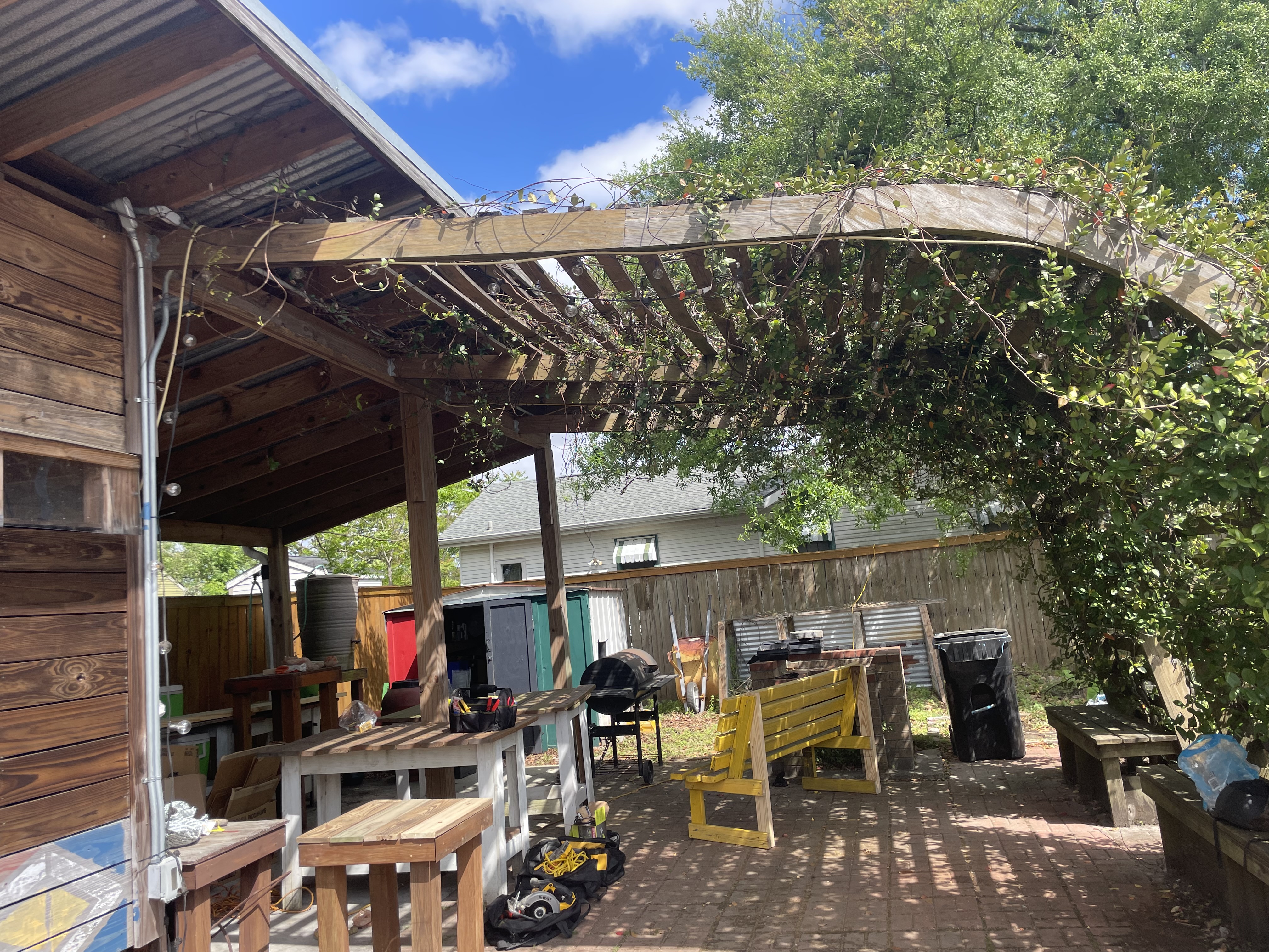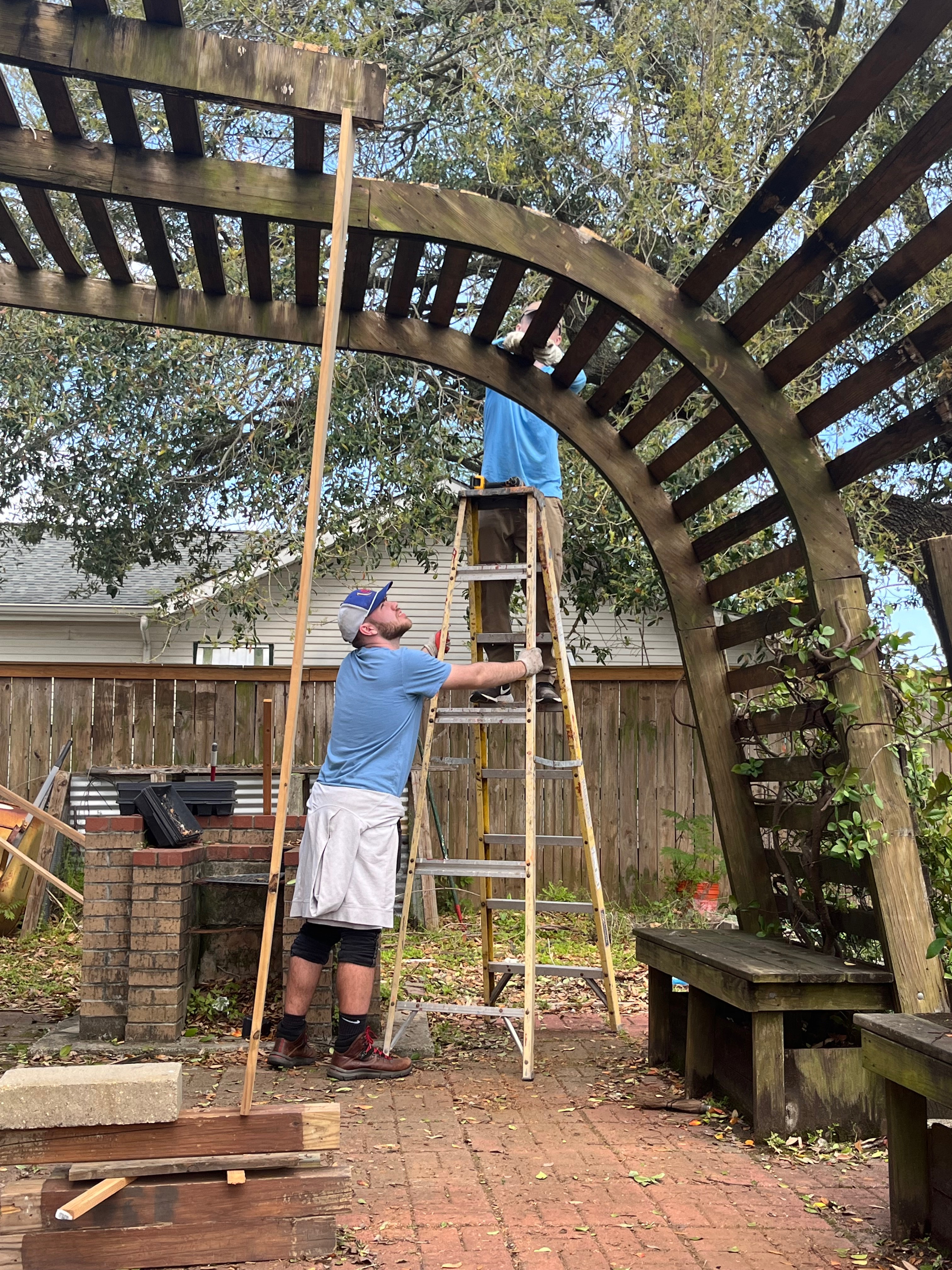 Our other projects were to power wash and repaint a church and its neighboring community center, update windows in traditional shotgun houses, renovating park bench in the community garden, building a new roof and pergola for the garden, and updating a deck.