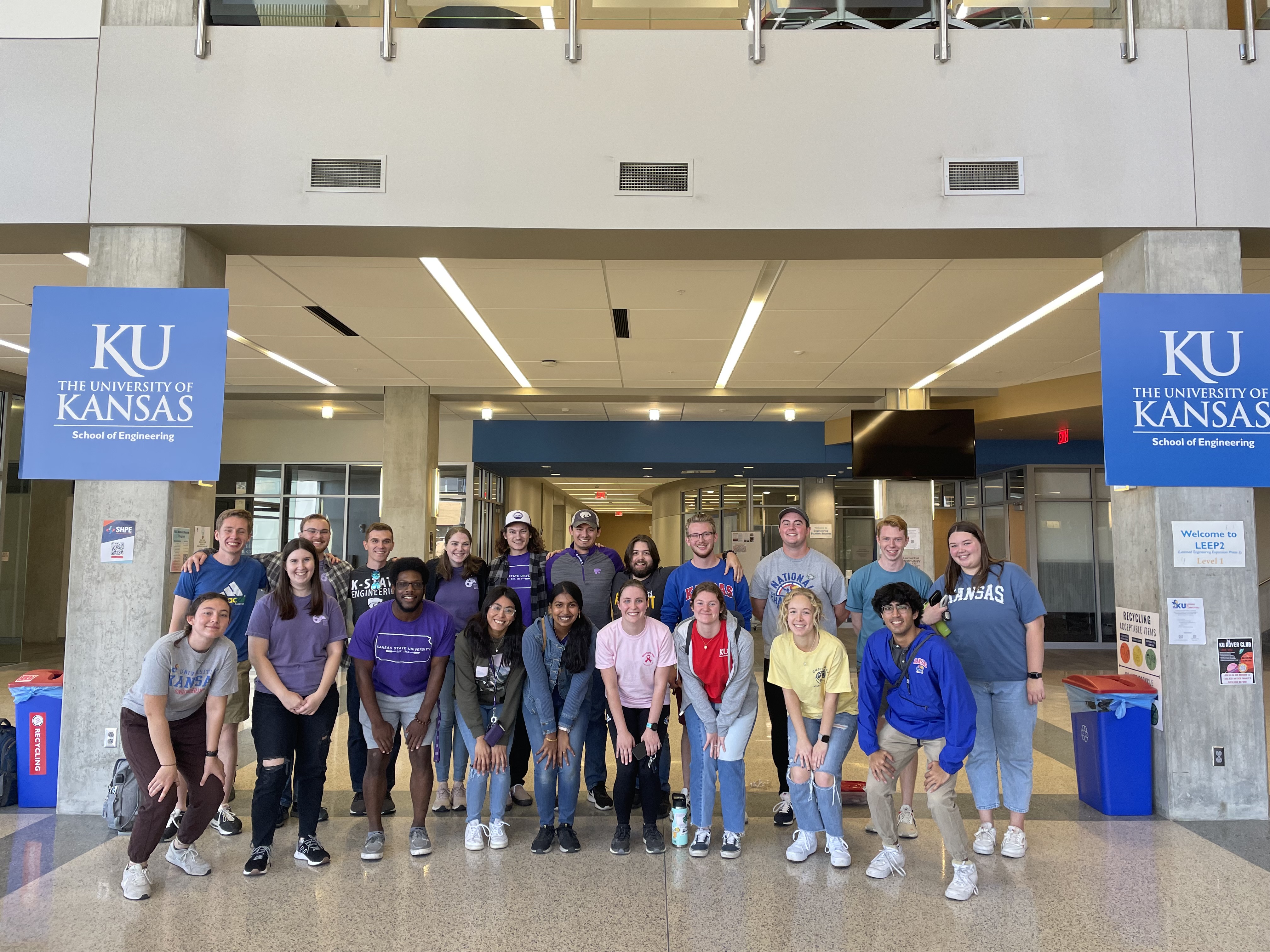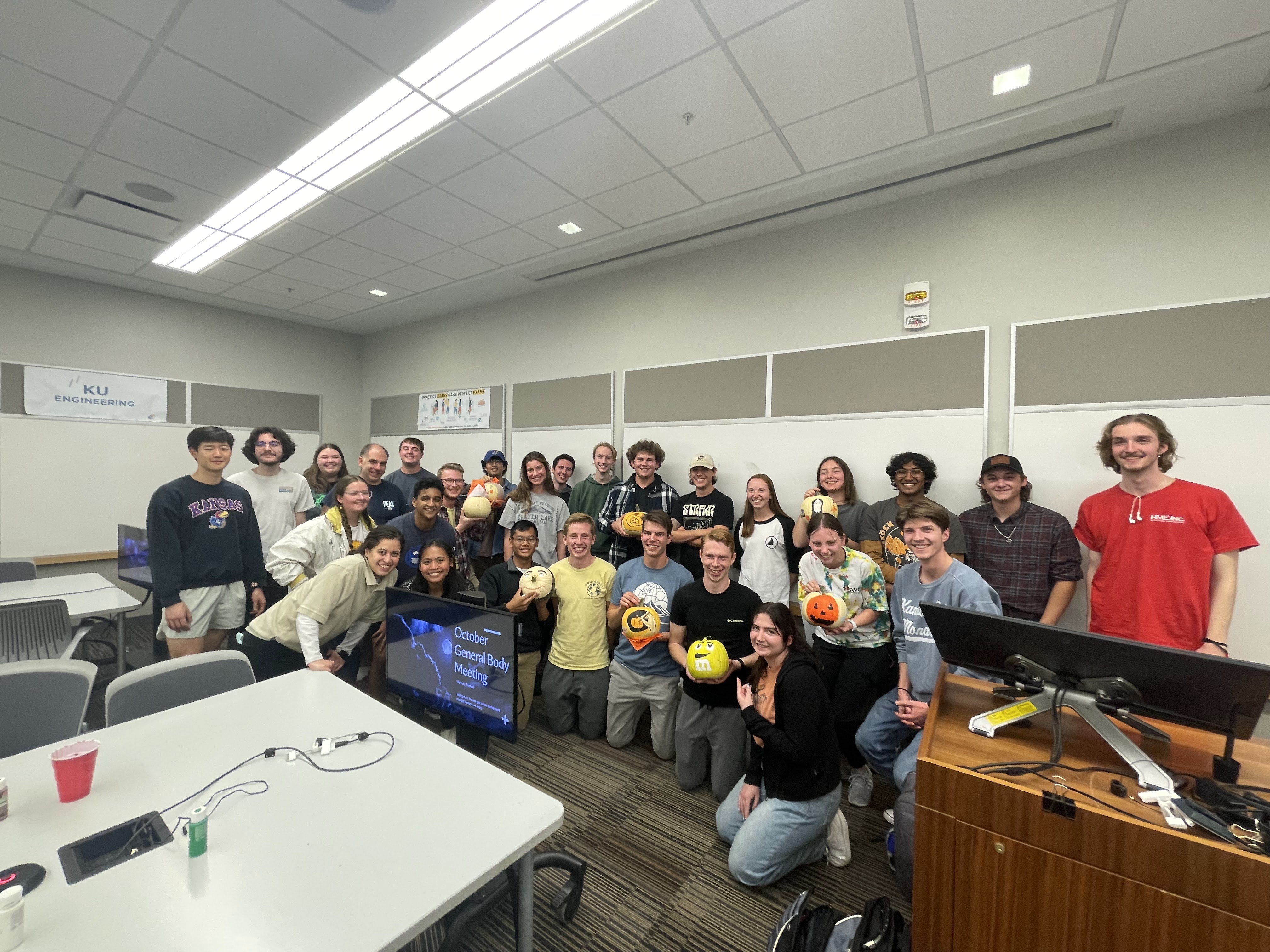 Every year, EWB chapters from around Kansas meet up at a host college and spend the day discussing their chapters. In October of 2022, we offered to host this meet up at the University of Kansas. It started with a pot luck in a nearby park and then moved to our School of Engineering for chapter presentations and breakout rooms. The day concluded with a “the-only-rule-is-no-rules” tallest tower building competition and a tour of our engineering facilities for the visiting chapters.